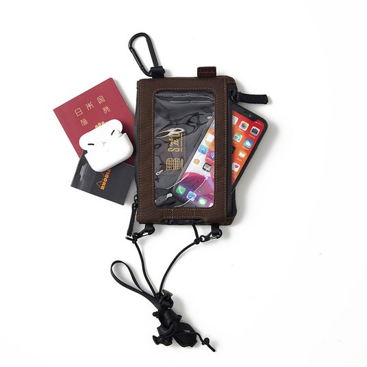 スマホを収納したままの操作や通話が可能で、ポーチ部分には必需品や小物類を収納できます。