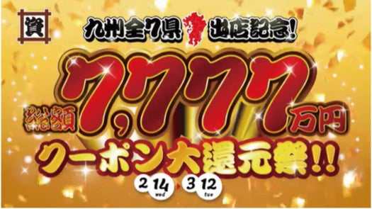 クーポン総額は、九州全7県出店記念の「7」にちなんで、なんと7,777万円!!
