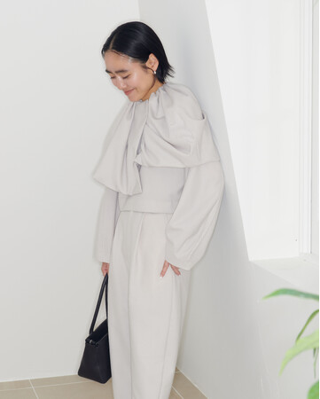 今回は、オケージョンにも活躍するケープセットプルオーバーとコクーンパンツをラインアップ。