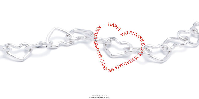 常に新しいユニセックスジュエリー、アクセサリーを提案し続ける株式会社JAM HOME MADE(所在地:東京都渋谷区千駄ヶ谷、代表:代表取締役社長 高橋征明)は、ブランド創世記からモチーフとして取り入れてきた勾玉形状のオリジナルフックを使用したブレスレットにバレンタイン仕様のハートチェーンを2024年2月より発売開始致します。