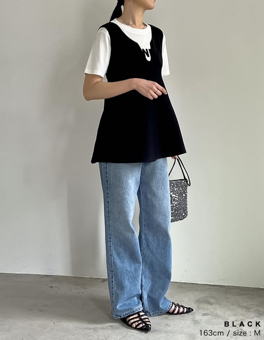 ペプラムデザインのシルエットが魅力のニットトップス。