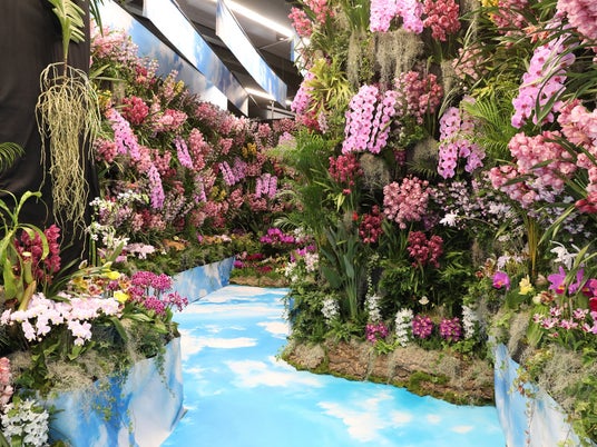 奥までアーチが続く色とりどりの10万輪の蘭のゲート。例年フォトスポットとして人気の、豪華な入口が、皆様を蘭の世界へお迎えします。純白の胡蝶蘭から、力強い黄色のオンシジューム、優しいピンク色のシンビジュームなど色の移り変わりをお楽しみいただけます。