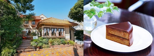<左:お店外観、右:「ザッハトルテ」>