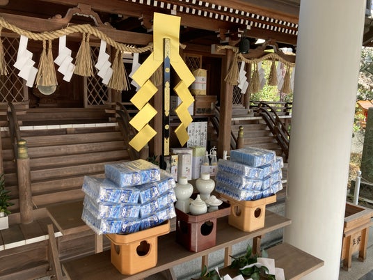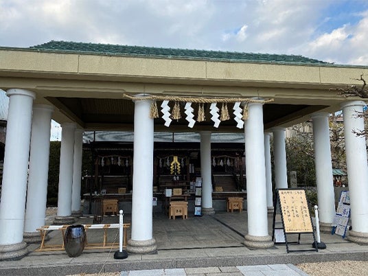 古代の空の神・饒速日命(にぎはやひのみこと)を祀り、パイロットなど空に携わる業務に就く方々が参拝に訪れるほか、境内には零式戦闘機のエンジンやF104戦闘機のジェットエンジンも展示されています。
