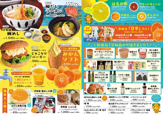 宇和島産の柑橘類や話題のじゃこ天のほか、ジュースやマーマレードなどの柑橘加工品、水産加工品、お菓子、調味料、真珠製品などを販売します。