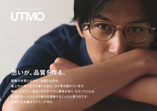 UTMO(アトモ)。このブランド名称は「最高の、最上の、最大限の」という意味をもつ「UTMOST(アットモースト)」に由来します。最上のメガネフレームを目指し、常に最大限の力で品質を追い求め続けていくアイウェアブランドとしての志が求められています。