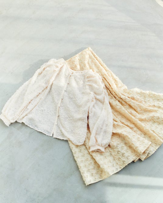 毛足の長いカットジャカードのブラウスとスカート。華やかに、表情豊かに春コーデを彩ってくれます。