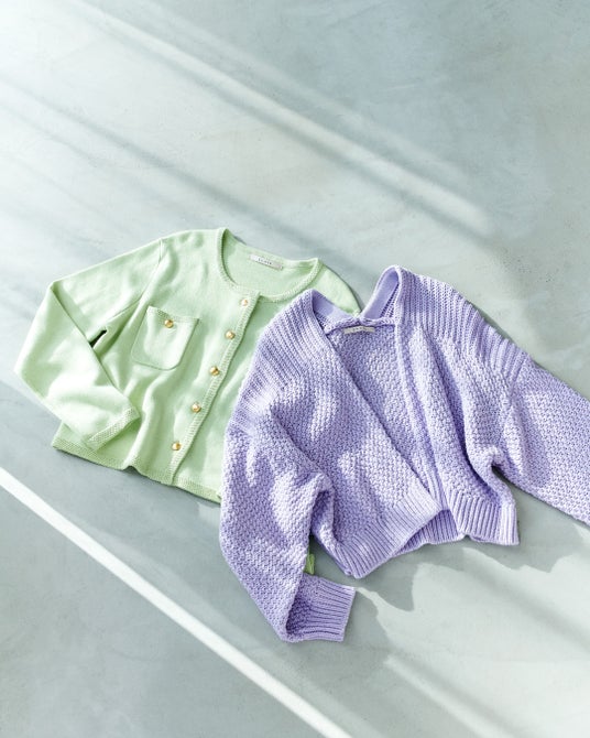 コットン/アクリルで仕立てた清涼感のあるカーディガン。ふっくらと柔らかな肌触りで春の気持ちを高めてくれます。