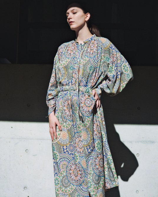 カレイドスコープワンピース ¥69,300多彩な模様のワンピース万華鏡の世界を表現した、多色で美しい模様のプリントワンピース。素材はフランスのテキスタイルメーカー、デヴォー社のオリジナルプリント。レーヨン100%の軽くてソフトな風合いも特徴。