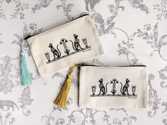 ポーチに描かれているのは、先月デビューしたばかりのエジプト神話がテーマのプライベートブランド【Notosglyph -ノトスグリフ-】のモチーフにもなっている、古代エジプトのネコの姿をした「バステト神」。今回のために書き下ろしたスペシャルデザインです。