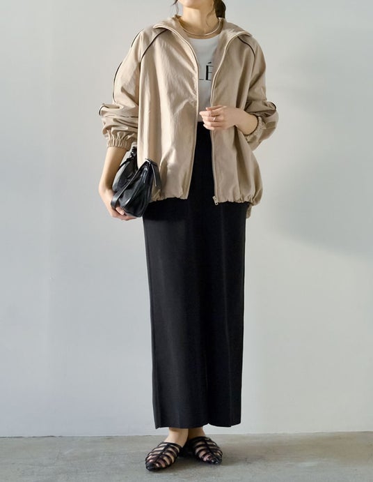裾先がドロスト仕様なので、ギュッと絞ってボリュームを出すなど、シルエットのアレンジができるのもポイントです。
