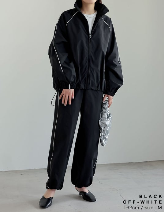 今季のトレンドスタイルにマストな、サイドラインが入ったジョガーパンツ。