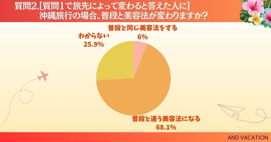 質問2.[質問1で旅先によって変わると答えた人に]沖縄旅行の場合、普段と美容法が変わりますか?