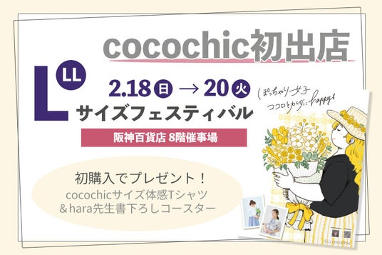 ぽっちゃり女子のためだけに企画・製造・販売するアパレル、株式会社ティークロス(本社:大阪府大阪市、代表取締役:竹中登、以下「当社」)の30~40代働くぽっちゃり女子向けの新ECブランド『cocochic』(ココシック)が、阪神梅田本店(所在地:大阪府大阪市北区梅田1丁目13-13)が主催する「S&Lサイズフェスティバル」に2月18日(日)から2月20日(火)まで3日間限定で出店いたします。