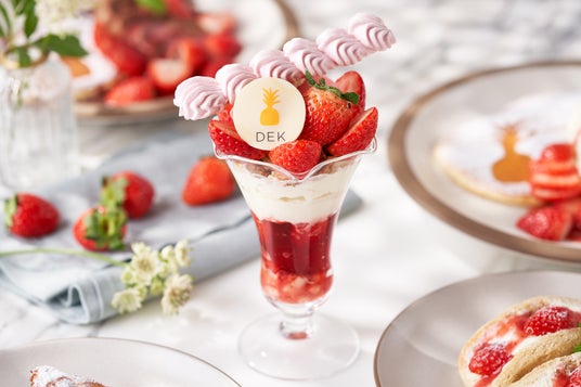 この度、「DEK 青山」のオープン1周年を記念し、 2月13日(火)~29日(木)の期間中、1階『DEK KITCHEN』にて、人気の苺スイーツ8品を平日のモーニング・ディナータイム限定で、20%OFFでご提供いたします。