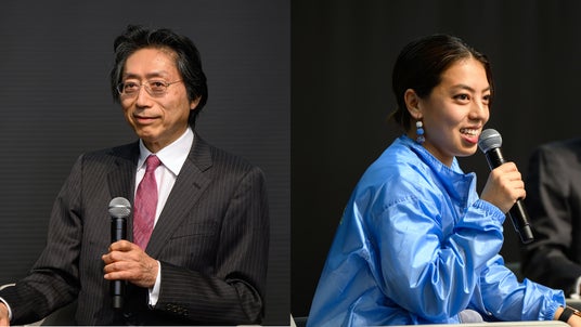 スピーチするイダ・ティン氏と、フェルマータ CEO 杉本亜美奈