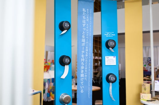トイレットペーパー型のナプキン「Egal Pads」の展示