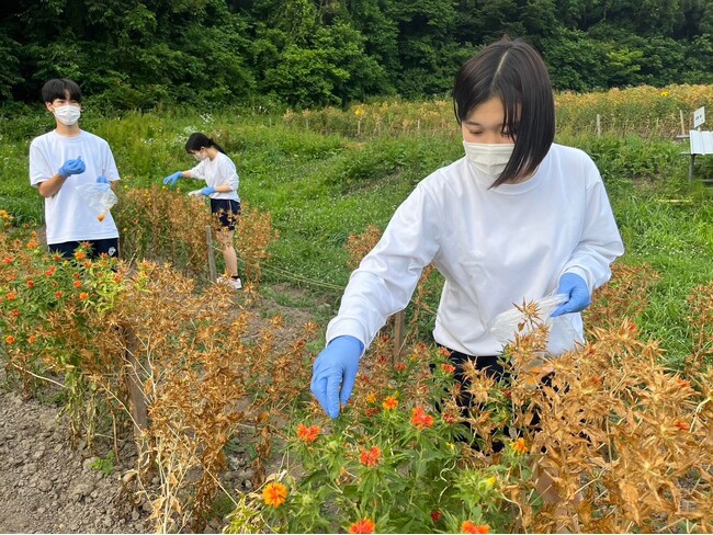 山形学院高等学校の調理科は授業で『食育』のカリキュラムを導入。2011年には天童市在住の紅花染め・料理指導者の大山るり子氏の指導のもと、天童市・貫津紅花栽培組合の方々と協力しながら『紅花』の種まき~収穫までを行っています。