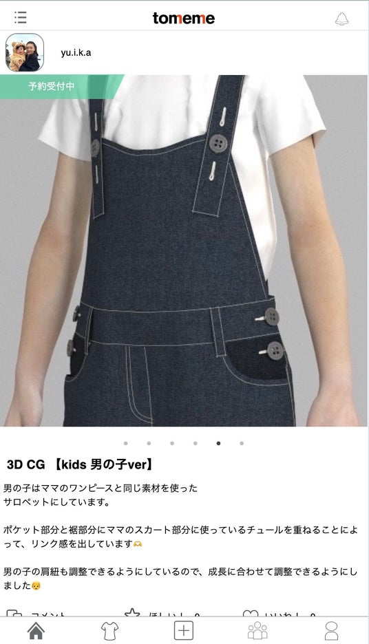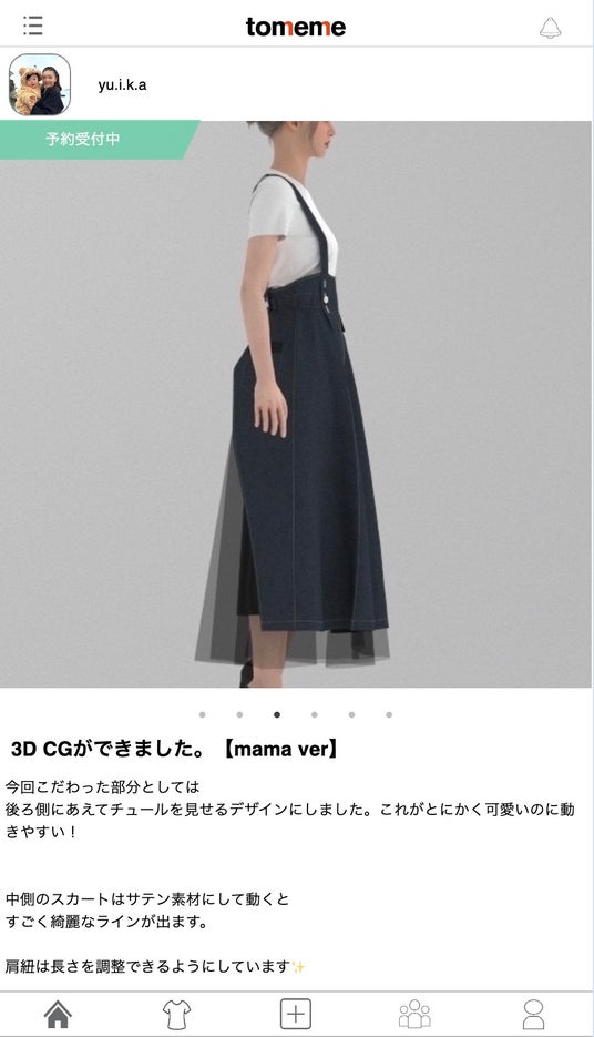 クリエイターが、デザイン作成から商品が出来上がるまでの過程をtomeme内で投稿することにより、ユーザーはその商品のストーリーを知ることができます。 どんな素材を使用して、その素材はどこでどう作られたものなのか。など、その商品の背景をタイムラインで投稿していきます。 また、サンプル制作前に3Dアバターによるモデリングを作成しているので、デザイン、素材、3Dなど商品が出来上がるまでのステップも楽しむことができます。