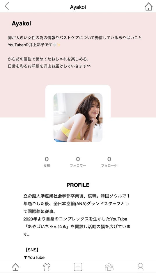 10代の頃から「バストが大きいこと」が悩みだったが、30歳の節目を迎えたタイミングで 「一度きりの人生、自分のカラダのことでクヨクヨしたくない!」「しっかり自分の身体と向き合い、少しでも美しくなろう」 というポジティブな考えに変わり、日々のバストケアなどに前向きに取り組むことを決意する。 2020年より自身のコンプレックスを生かしたYouTube「あやぱいちゃんねる」を開設。同じようなバストの悩みを抱えている女性の為に必要な知識や情報を発信し、SNS総フォロワーは23万人以上。2021年にはクラウドファンディングでデジタル写真集を制作。