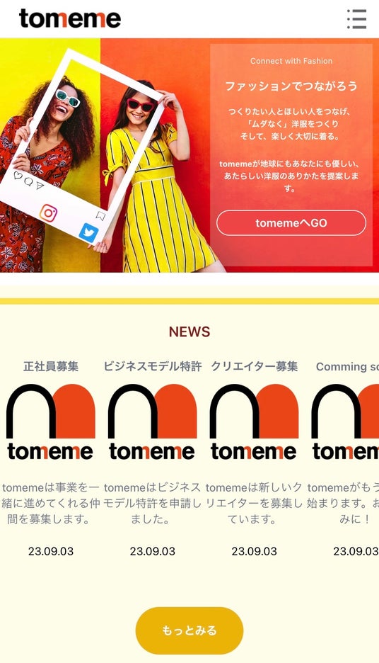 tomemeにはブランドという概念がありません。クリエイター自身がどのような人物で、どのような思いで洋服を作りたいのか、という思いをクリエイ ターページで表現しています。
