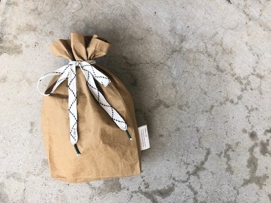 オッフェン(Öffen)は靴箱がありません。その代わりに、リユースを目的としたペーパーバッグを作りました。水で洗えるぐらい丈夫な再生紙の袋に入れてお渡しさせて頂いています。ご自宅の観葉植物のプランターカバーでご使用頂いたり、野菜を保存するだけの使い方ではなく、アイデア次第で色々とライフスタイルの中でご活用頂けます。リボンの靴紐は捨てずに、2本揃えば手持ちのスニーカーにお使いください。