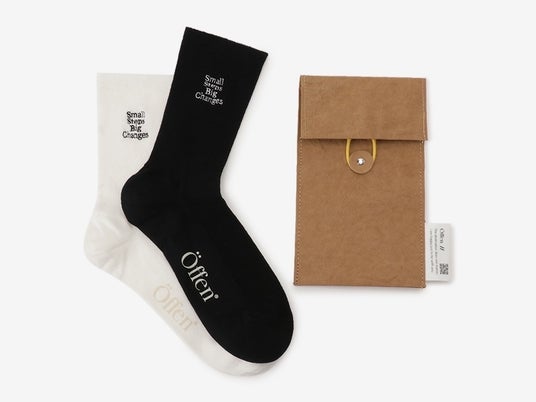 □Öffen初となるオリジナルのオーガニックコットン靴下を発売開始。<Focus on Good>または<Small Steps Big Changes>という愛のあるメッセージの刺繍が施されています。
