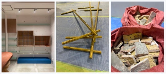 □以前この地で展開されていた店舗様の廃棄品の一部から生まれ変わった”アップサイクルな工夫を施した什器”の展開