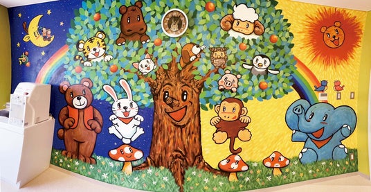 今回の記念展会場でもある八尾市文化会館プリズムホールのベビールームの壁画
