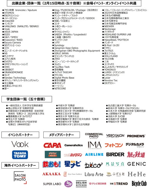 ハービー・山口氏(写真家)、川島小鳥氏(写真家)、なぎら健壱氏(フォークシンガー・タレント)、GYUTAE氏(美容クリエイター)のトークステージなど、カメラ・写真・動画にまつわるコンテンツが盛りだくさん!