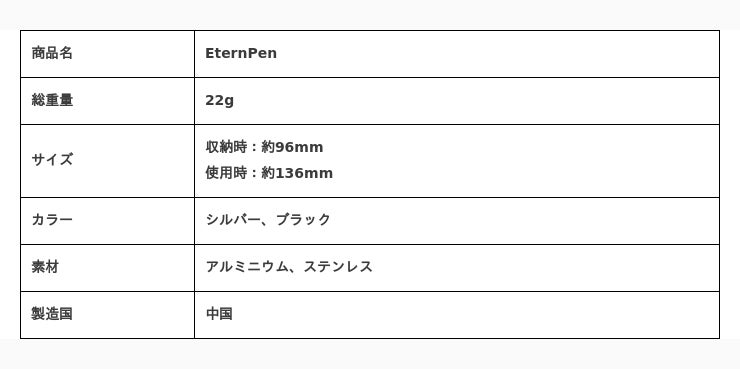 EternPenのサイズは約96mm、重さは驚きの約22gで、超軽量!