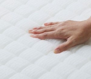 「ソフレスト(R)」は中素材はタテとヨコを組み合わせた3層構造。1・3層目は縦型不織布の「V-Lap(R)」で肌当たりよくしっかりとフィットし、縦の力でサポート。2層目の横型不織布がしっかりと身体を支えて、自然な寝姿勢に導きます。