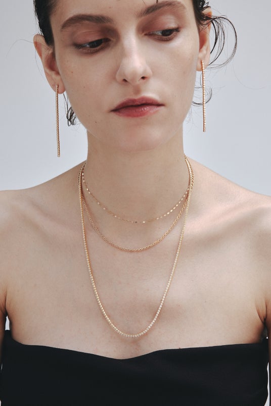noble long necklaceは、優雅にきらめくチェーンの表情が伝わりやすく、気品溢れるアクセントとして作用します。