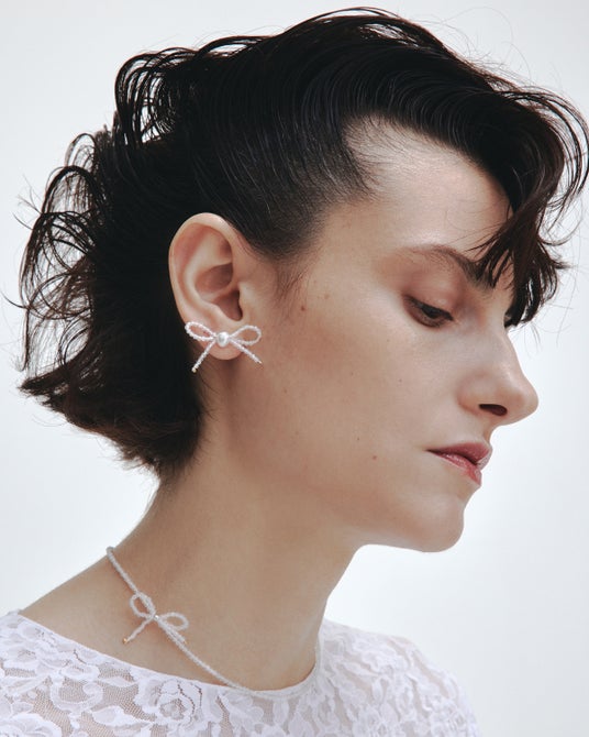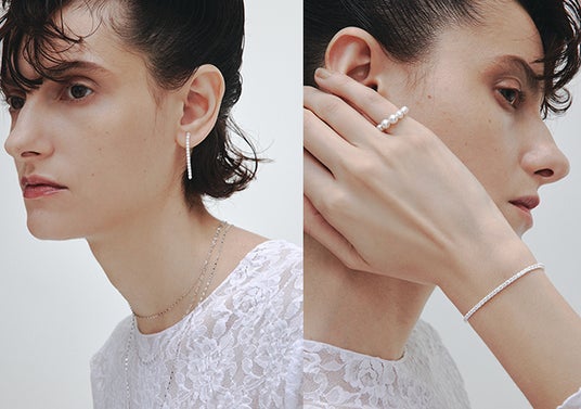 控えめなジュエリーに見えて、優美な佇まいで印象的な表情を演出します。