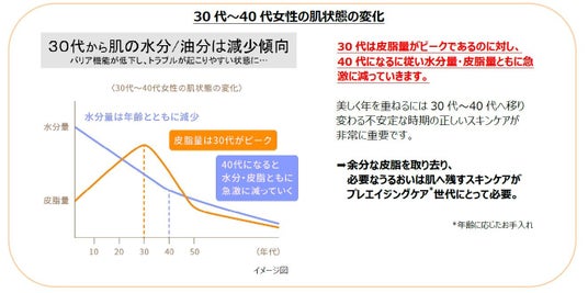 50年以上、エイジングケア*に着目した商品を提供しているナガセビューティケァの歴史とノウハウを生かし、30代からのプレエイジングケア*世代に向けたスキンケアです。