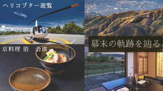 幕末の志士である武市半平太の寓居跡に構える京料理 箔でのお食事と、京都の幕末の軌跡を空からヘリコプターで巡るコラボプラン。歴史好きな方はもちろんのこと、ご旅行の思い出に、特別な記念日におすすめです。