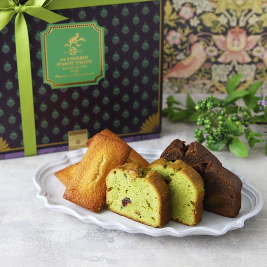 ピスタチオの奥深い風味の余韻が続く “ピスタチオのパウンドケイク” やフィナンシェがお楽しみいただける、ピスタチオのパウンドケイク入り焼菓子3種の詰め合わせ。