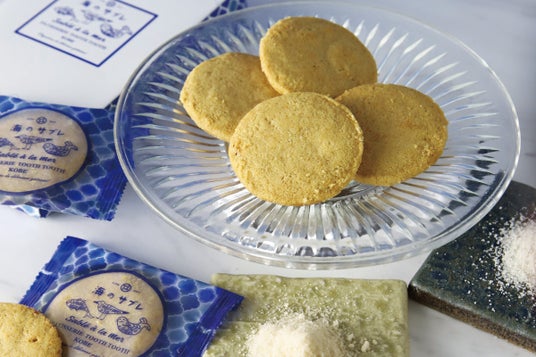 港町・神戸「TOOTH TOOTH MART FOOD HALL&NIGHT FES」で限定発売していた、北海道バターの風味豊かな “海のサブレ” が全国にお届けできるようになりました。フランス西海岸、ブルターニュ地方にあるゲランド塩田で手作りされる無添加の海塩と、 自然の旨味を凝縮したマイルドな風味と香りの瀬戸内の藻塩で、香ばしいバターの味わいを引き立てています。シンプルだからこそ美味しい味わいをお愉しみください。