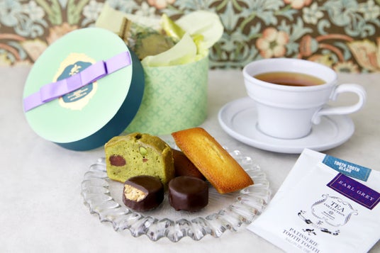 4種の焼菓子と紅茶を春らしい限定パッケージで