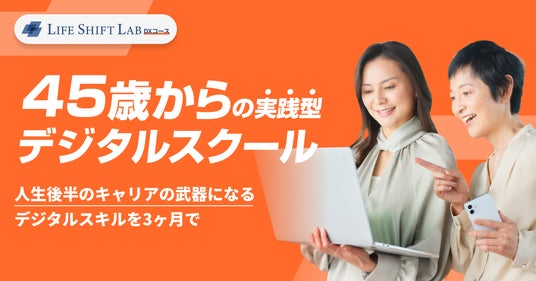 年齢による働きがい格差の是正を目指す株式会社ライフシフトラボ(代表取締役:都築辰弥、本社:東京都港区、以下「当社」)は、45歳からの実践型デジタルスクール「ライフシフトラボDXコース」を開講いたします。人生後半のキャリアを、ひいては社会を切り拓くデジタル人材になれる、40代後半から60代のための3ヶ月間短期集中リスキリング講座です。