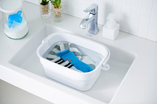 『折りたためるつけ置き洗いバケツ』は、つけ置き洗いに特化した折りたたみバケツとなっております。バケツは役立つけれど「使わないときは邪魔だなぁ」と思ったことはありませんか?『折りたためるつけ置き洗いバケツ』は、使わないときは折りたたむことができるので、隙間収納が可能な商品となっております。また、面倒な水くみも洗面所内ですることができるので手間がかかりません。