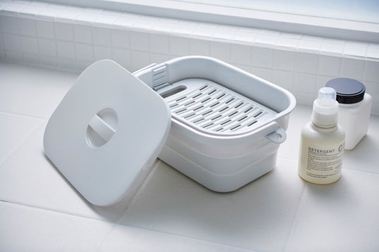 暮らしにプラス+チックな商品を提案する会社・株式会社伊勢藤は『折りたためるつけ置き洗いバケツ』を販売。洗濯板やふたが付いているので、様々なシーンに合わせて使用可能な商品となっております。
