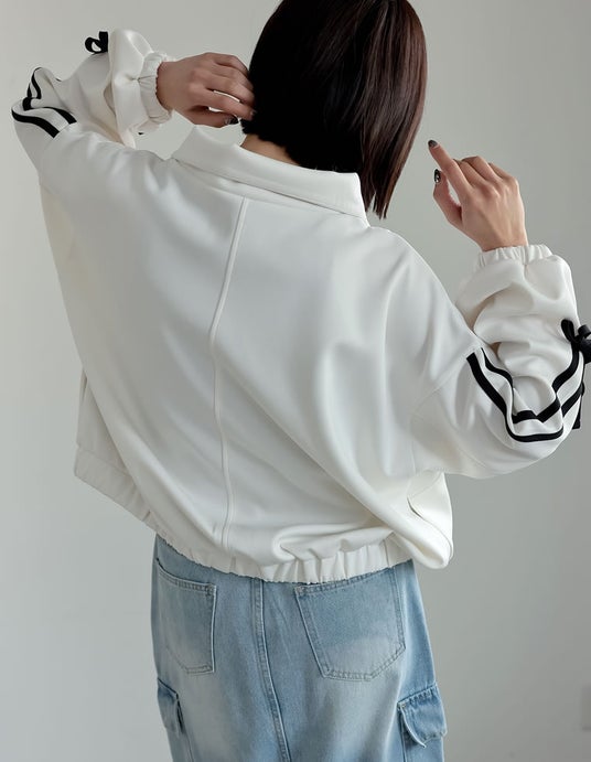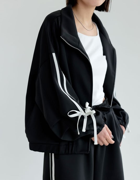商品名:ストレッチポンチサイドラインリボンブルゾン