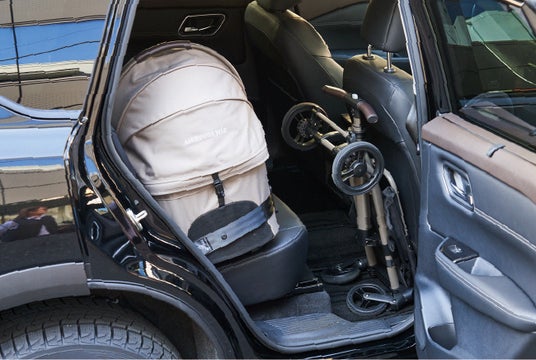 前後どちらからでも大きく開くルーフでお世話もらくらく