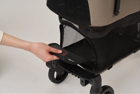 前からでも後ろからでも大きく開く快適ルーフは新しくマグネットバックルを採用しより開閉しやすくなりました。外からは見えにくく内側からは視認性の高いピーカブーウィンドウや、コットの底面にはクッション性のある専用マットを標準装備。ヒトにもペットにも嬉しい機能が充実しています。