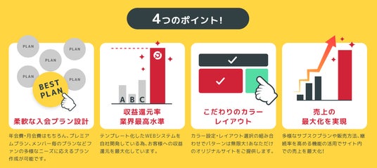 日本テレビグループの日テレWandsが、20年にわたり培ったWebサービスの構築、運営ノウハウを活かし提供。システムの構築や個人情報の管理といった手間を気にせず、「ファンとつながる場」を素早く、リスクを最小限にして実現します。コストや時間を抑え、気軽にファンコミュニティを開設することができます。