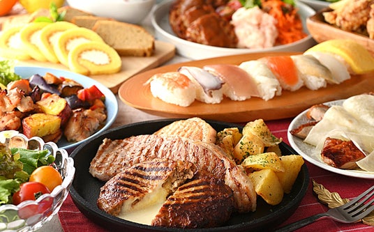 ・ステーキやハンバーグなどの肉メニューが食べ放題で堪能できるプレミアムコースを