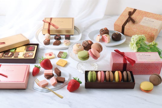 サクッとしたマカロン生地でガナッシュをサンドした「マカロン」、ショコラとマカロンを融合させたリッチな味わいの「ショコラマカロン」や、甘みと酸味のバランスが良いあまおう苺を使用した「あまおう苺の生チョコレート」などを期間限定でお届けします。