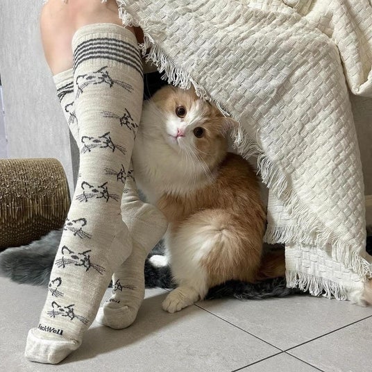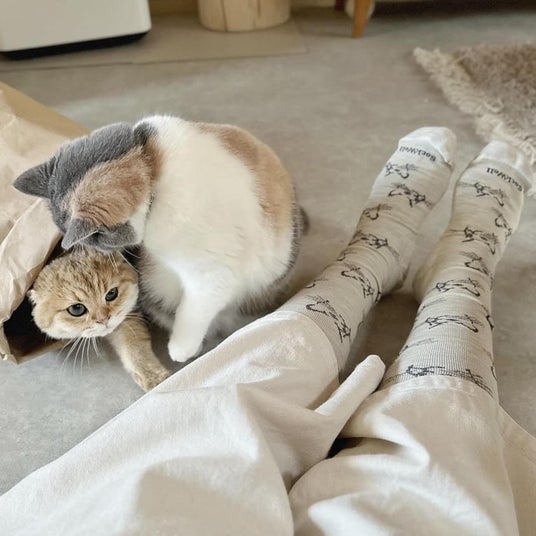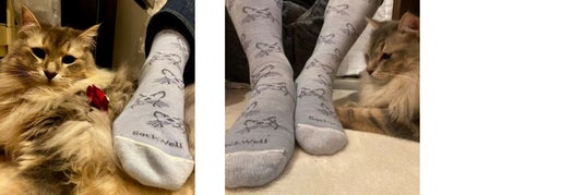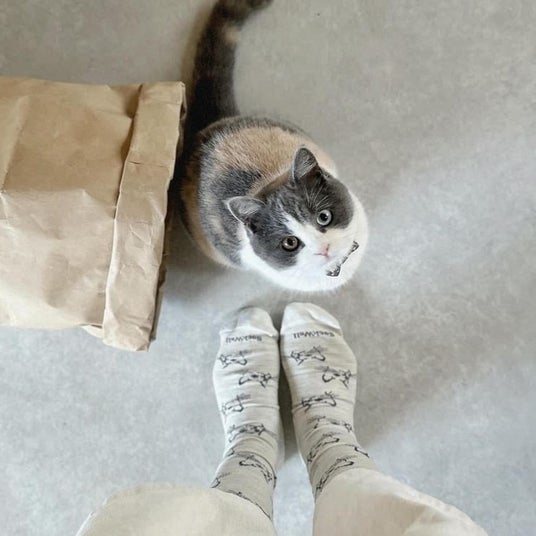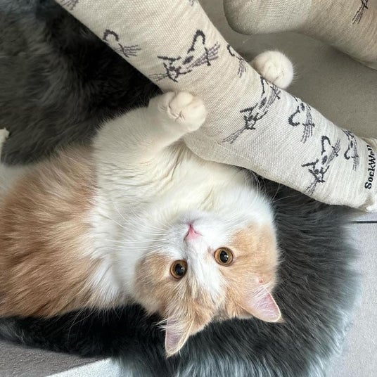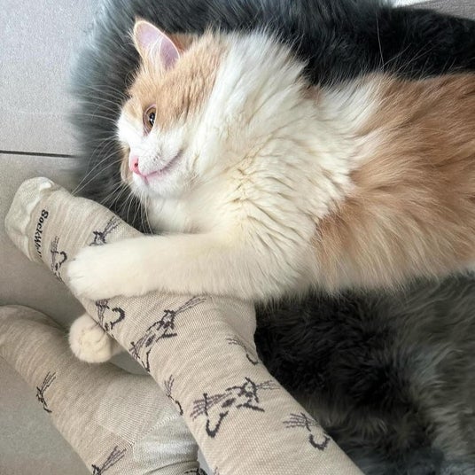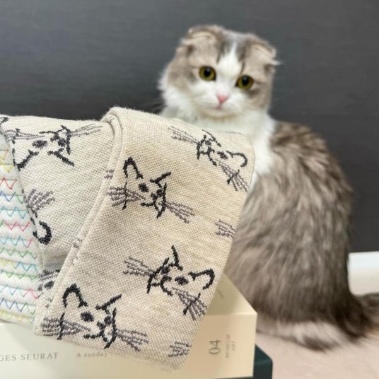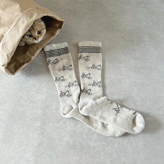 もふもふの猫ちゃんと、猫柄ソックスとのコラボレーションで、癒されること間違いなし!