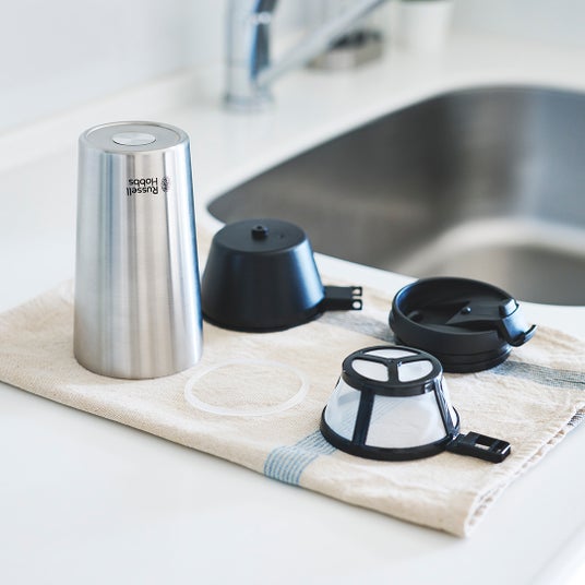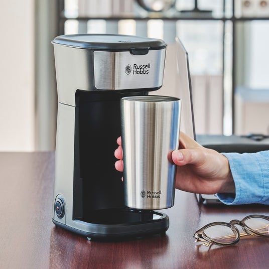 ラッセルホブスのタンブラードリップは、お気に入りコーヒーを、お好きな場所でドリップして楽しめる、パーソナルなコーヒーメーカー。保温・保冷に優れたタンブラーは持ち運びにも便利で、ドライブや街歩きのお伴にも。ベッドサイドでの目覚めの一杯や、リモートワークデスクで休憩の一杯にと、日常のささやかなひと時も、タンブラードリップで豊かなひとときになります。